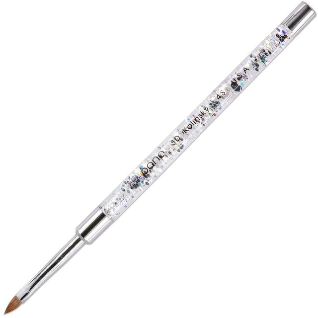 PANA 3D Nail art brush with a brush size #4 has a 100% kolinsky hair bristle that will ensure that the brush itself will not fray or shed on its own. It also has a high graded crimped silver ferrule that holds the brush firmly and grips the acrylic handle well.