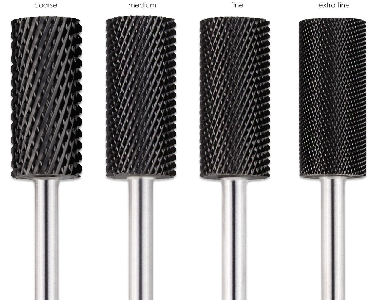 PANA Flat Top Drill Bit is known for it's simplicity to cut, shorten, backfill and shape the nail. However, be careful of the cuticles, as the sharp edges may cut into the client's skin. The drill bit has two barrel size options to help tackle surface areas, such as large barrels for larger areas, and small barrels for smaller areas. PANA Flat Top Drill Bits has three different color variations such as silver, gold and the diamond-like carbon coating that lasts three times longer, DLC black.