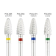 The cone shaped carbide drill bits are rounded at the top of the football shape barrel to help reach the problem areas that need to be smoothed out as quick as possible that is under the nail as well as closer to the cuticles and sidewalls. Small rounded side barrels size is perfect for detailed coverage and under the nails safely. The rounded head is safe to use on cuticles and nail walls. The cone shaped carbide drill bits come in 5 different sizes (ranging from extra fine to extra coarse). Best for nail techs who are working on artificial nails, the drill bit has many uses: from smoothing, removing gel to cleaning hard to reach areas, such as under the nail.