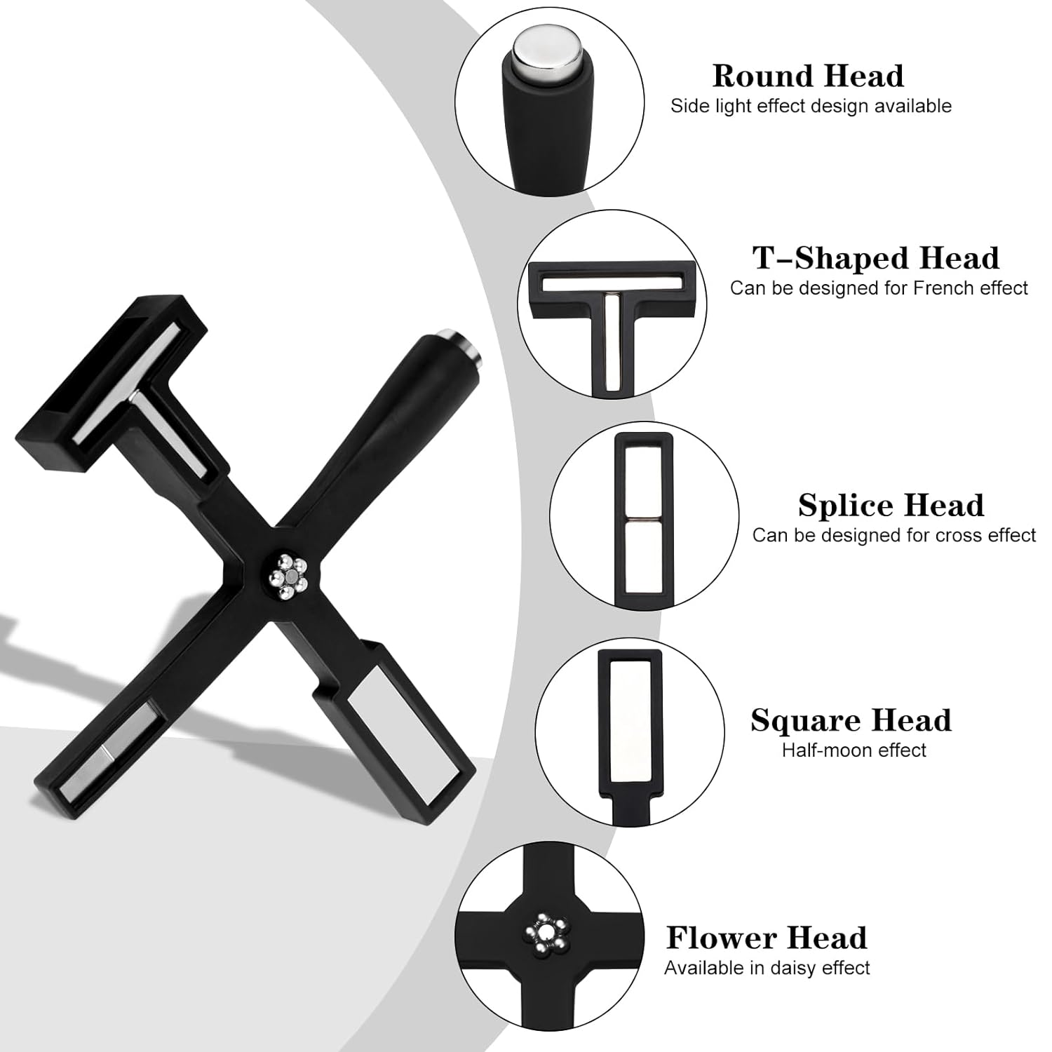 Multifunctional Cat Eye Magnet: Equipped with 5 unique magnet heads, this 5-in-1 nail polish magnet allows you to create a variety of stunning cat eye effects, including the elegant French effect, captivating black hole, and exquisite floral designs. Unlock your creativity and personalize your cat eye nail art with this versatile nail magnet!