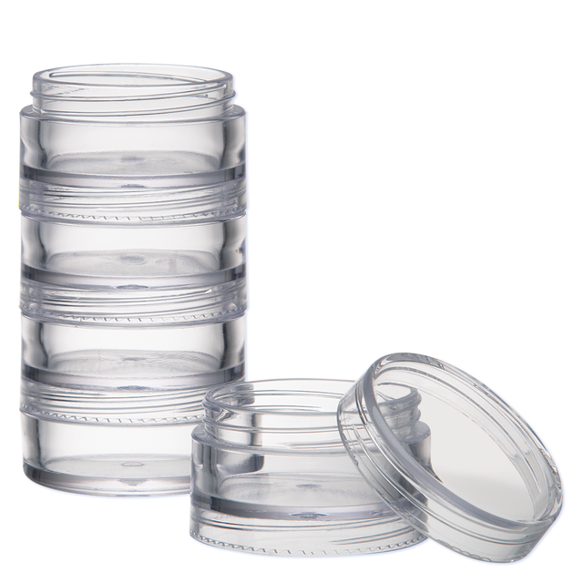 The BM(FSC398) 5 Tier Stackable Jar is a compact and convenient storage solution featuring five stackable compartments, each holding 3ml.