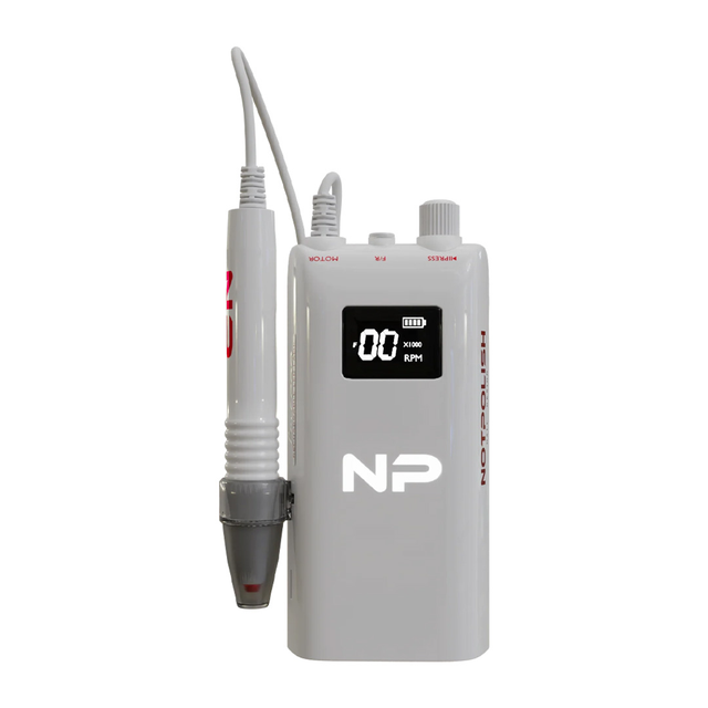 Introducing your newest obsession, LuxePro Drill!  Our innovative Drill handle is very lightweight designed for nail techs! Coated with our sexy signature red chrome.  Did we mention its cordless and rechargeable, yes our Drill will give you 8-10 hours worth of unplugged battery life! We included a LCD screen for speed with forward/reverse switch and smooth/low vibration! Your Nail Game just got hot and luxurious with Notpolish LuxePro!